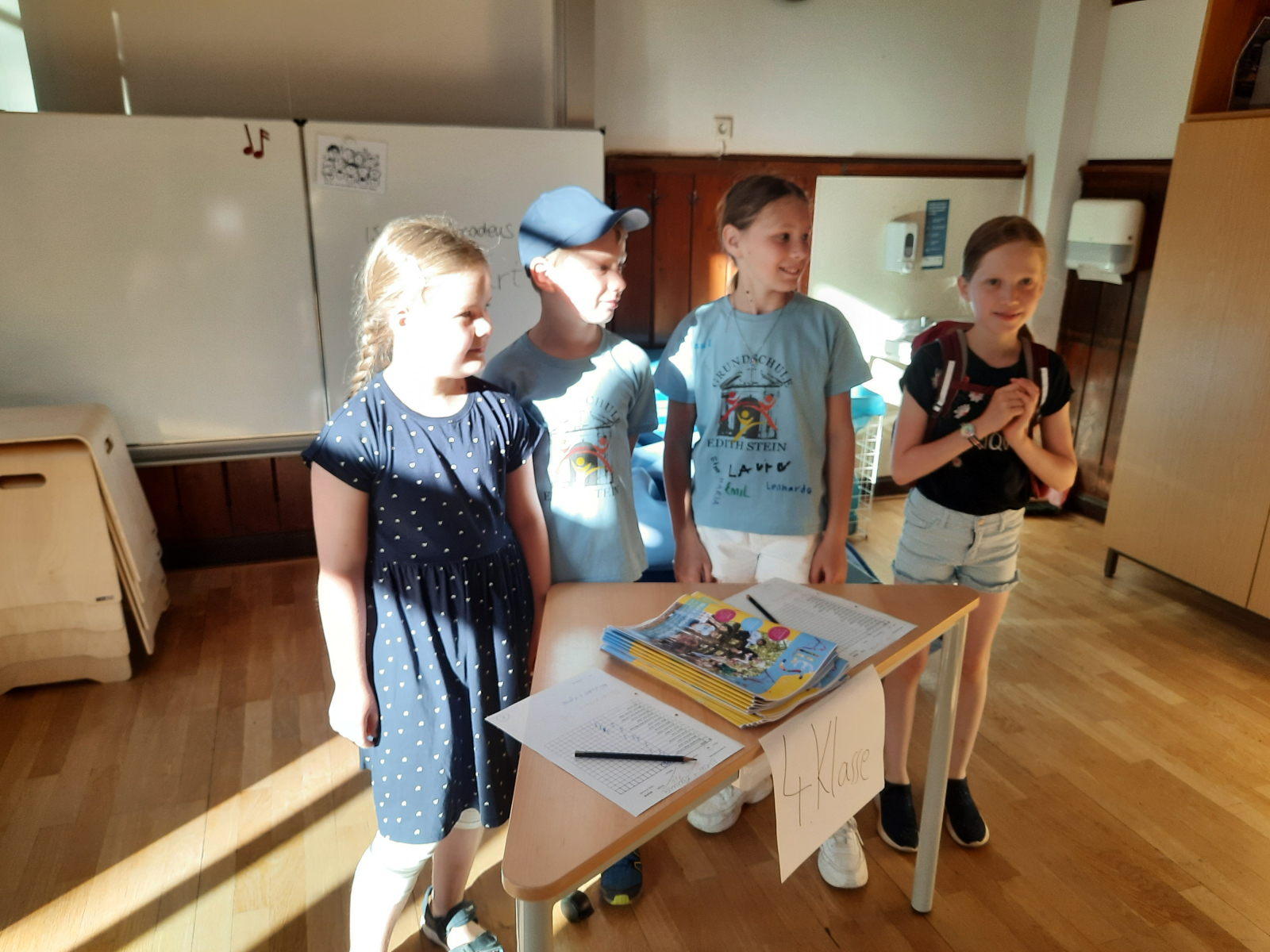 Pünktlich zum Schuljahresende – am vorletzten Schultag – konnten wir die zweite Ausgabe unserer Schülerzeitung „Alles über alles“ verkaufen.