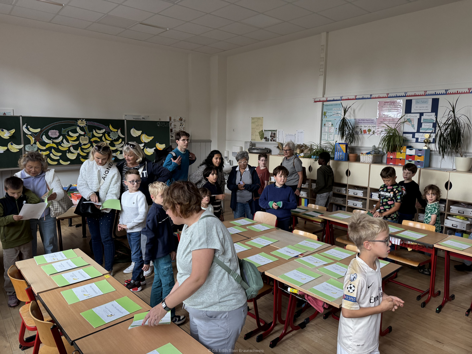 Begleitet von ihren Familien und den Klassenlehrerinnen machten sich die Schulanfängerinnen und Schulanfänger auf den Weg in die Schule. Dort wartete bereits die erste Unterrichtsstunde. Währenddessen kamen die Gäste auf dem Schulhof bei Kaffee, Kuchen und Getränken zusammen. Viele fleißige Hände sorgten für ein lebendiges Miteinander und eine fröhliche Atmosphäre.